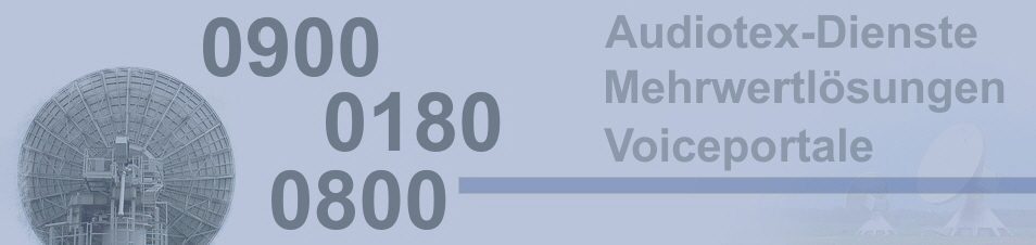 Wir sind ein seit dem Jahr 2001 bestehendes Telekommunikationsunternehmen, spezialisiert auf den Betrieb von Servicerufnummern und Audiotexprodukten. Neben Standardlösungen stellen wir komplexe Telekommunikations- und Audiotexlösungen im Bereich der Service-, Support-, Info- und Entertainment-Telefonie zur Verfügung. Durch unsere langjährige Erfahrung und unsere technischen Möglichkeiten sind wir in der Lage individuelle Services umzusetzen : Von der einfachen Kundenhotline bis zum interaktiven Liveportal !